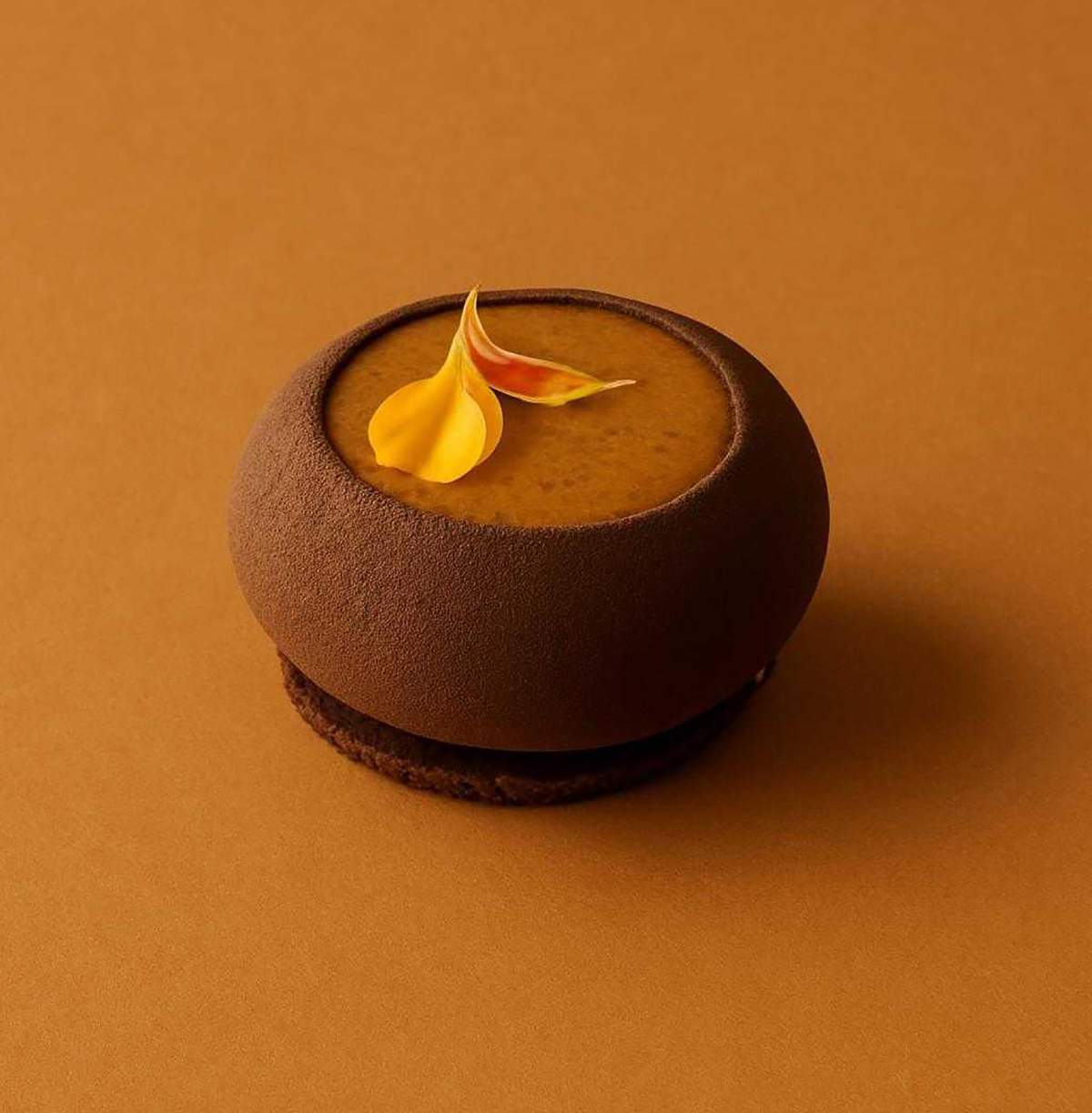 Namelka marron / Praliné sarrasin / Confit mandarine au poivre de sarawak / Biscuit noisette / Streuzel chocolat et zeste de mandarine / Sablé mandarine