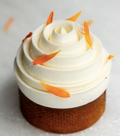 Venez découvrir sa compotée d'abricot à l’intérieur d’une crème amande et romarin et surmontée d’un crémeux d'abricot.